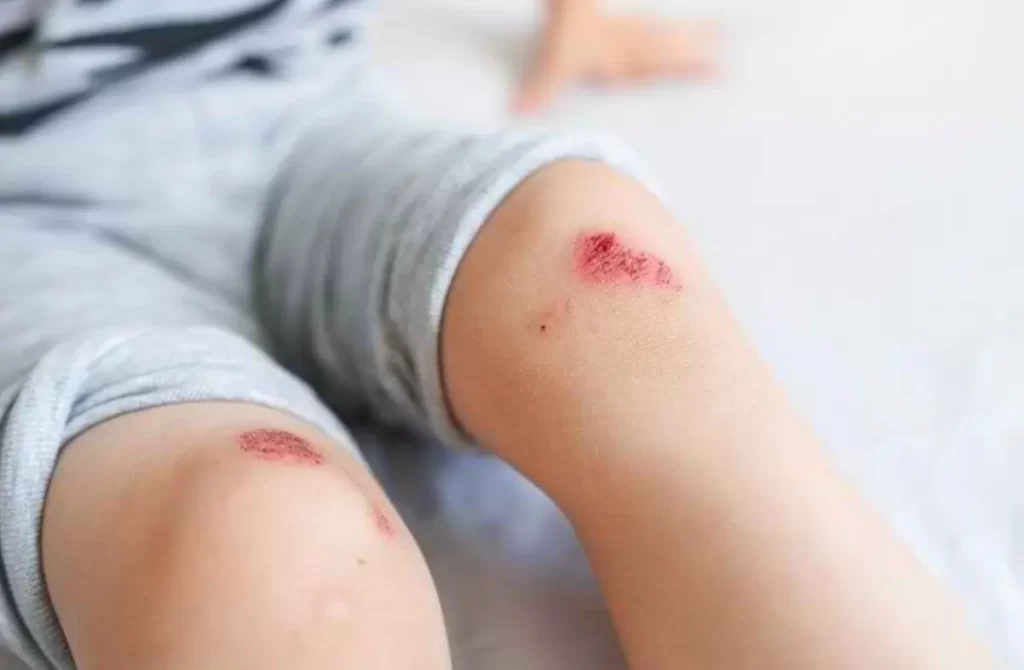 Kulit di sekitar luka kering, kasar, dan mudah teriritasi.